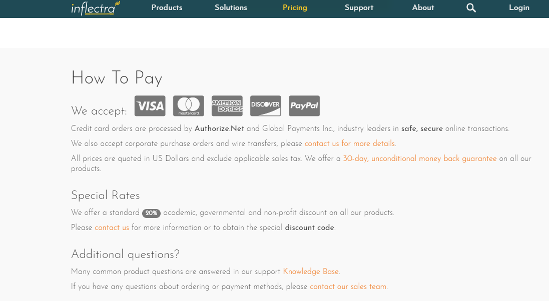 Inflectra also offers an additional 20% academic, governmental and non-profit discount on all its products.