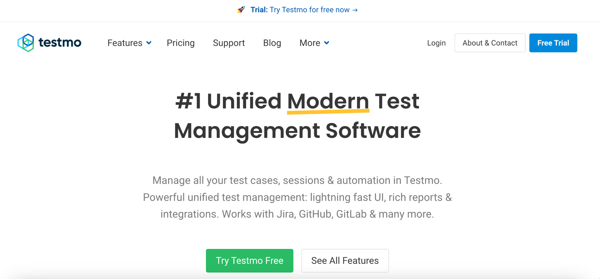 Testmo integrates with popular project management tools, like Jira, GitHub, and GitLab and test automation frameworks like Selenium and Appium.