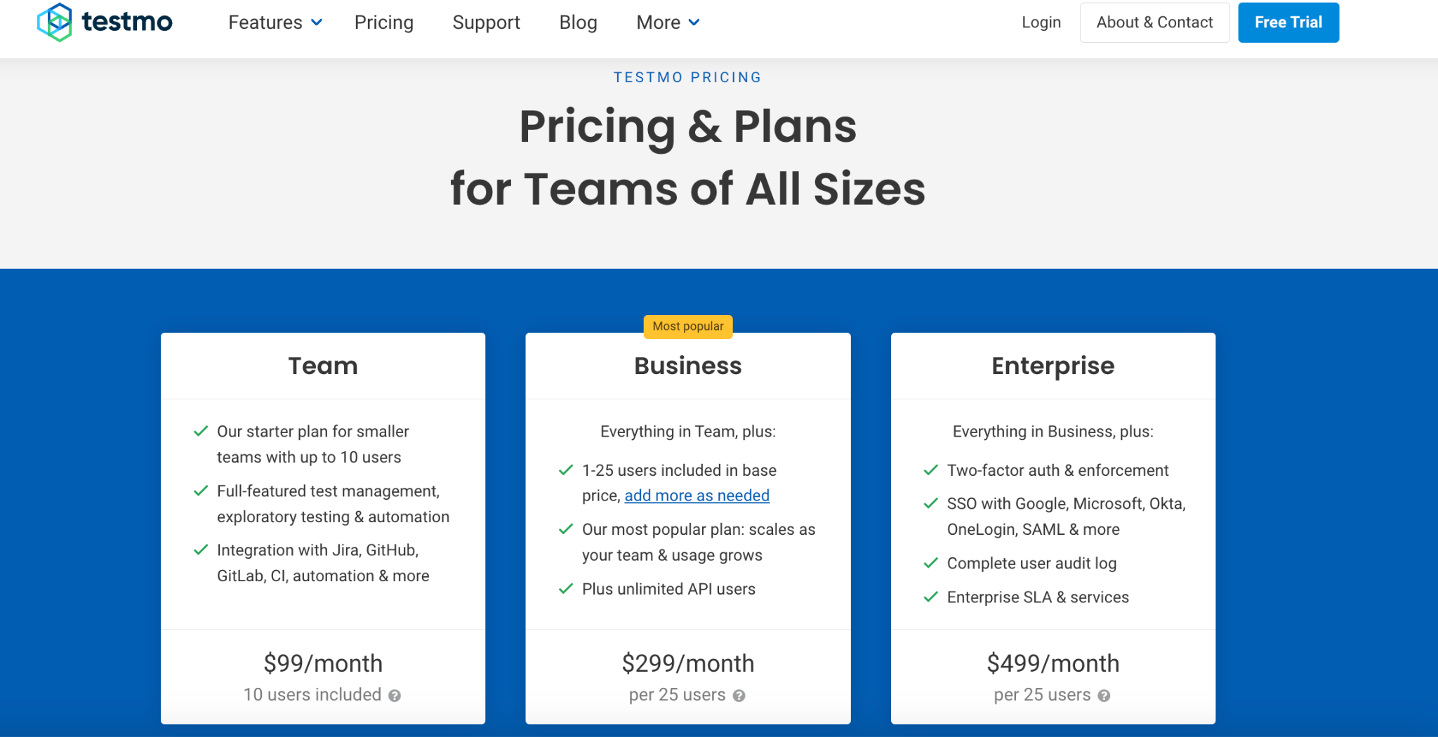 Talking about the price, it’s almost 1/3rd the price compared to Testmo.