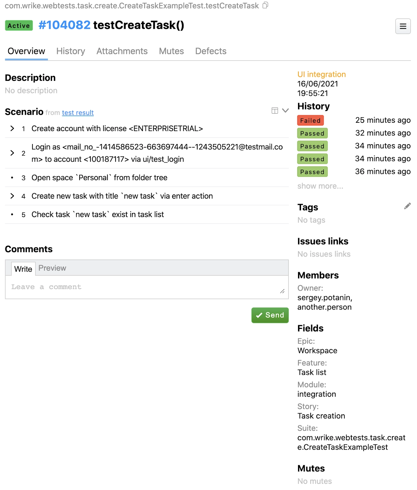 To find the test in Allure, we need to get its ID. At Wrike we use our custom annotation, @TestCaseId: