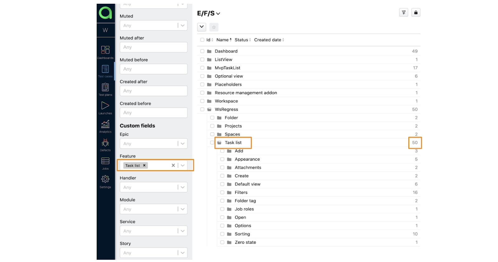 For example, we can find how many tests we have for a task list feature. This means that we can see which parts of the application are covered better than others.