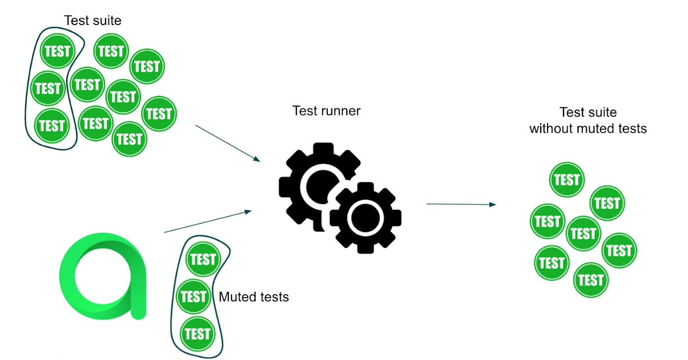 Imagine that we have a test suite we want to run. We pass a list of those tests to the test runner. But some of those tests are muted and we don’t want to run them. To know exactly which tests are muted right now, the runner requests the list of muted tests from Allure TestOps by its API. Then the runner removes the tests from the original set and the new relevant test suite is ready to go.